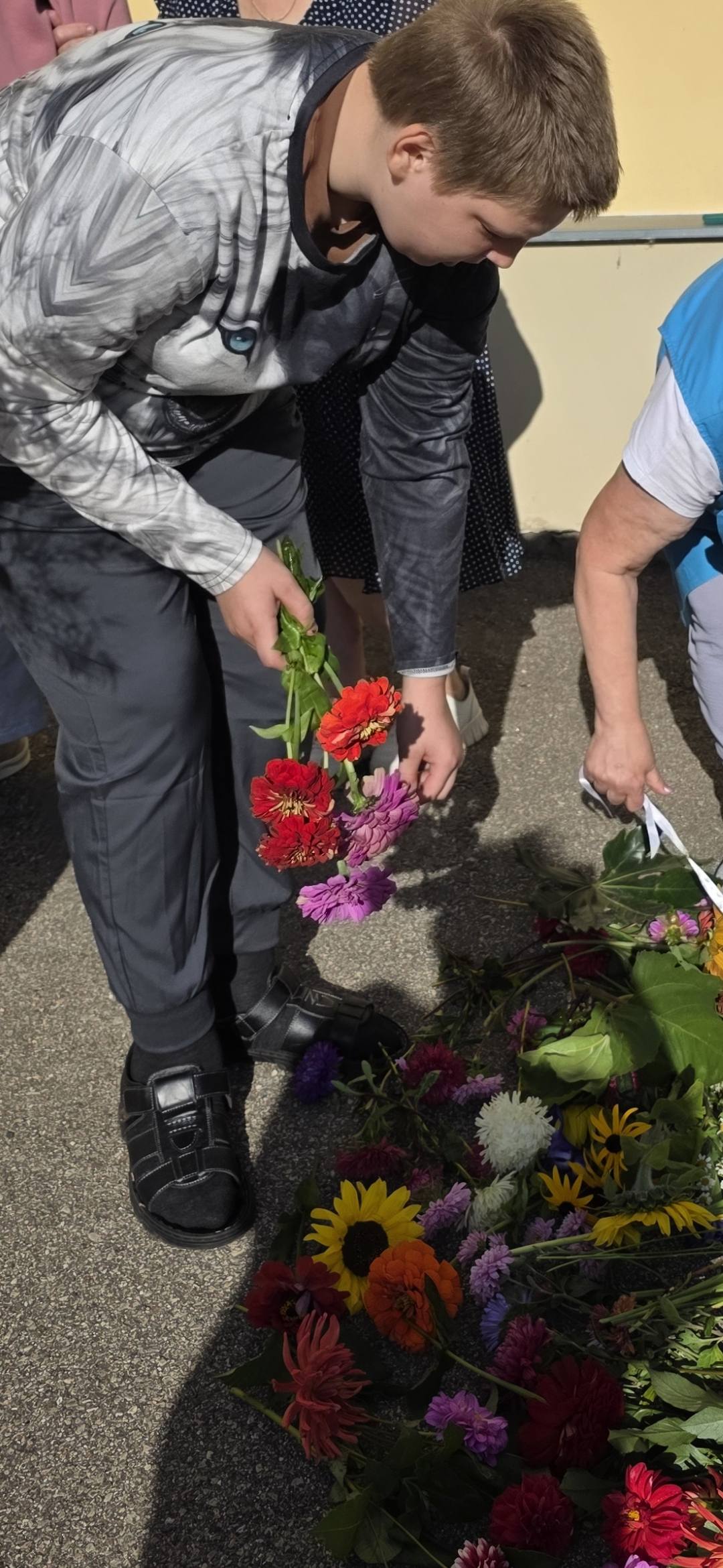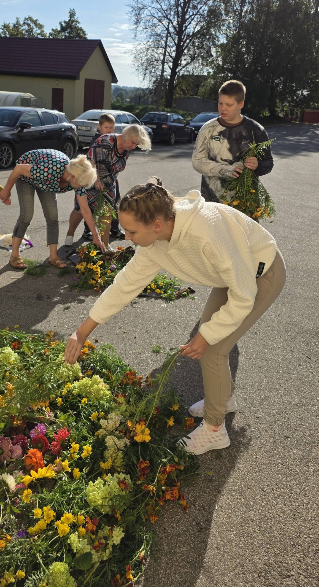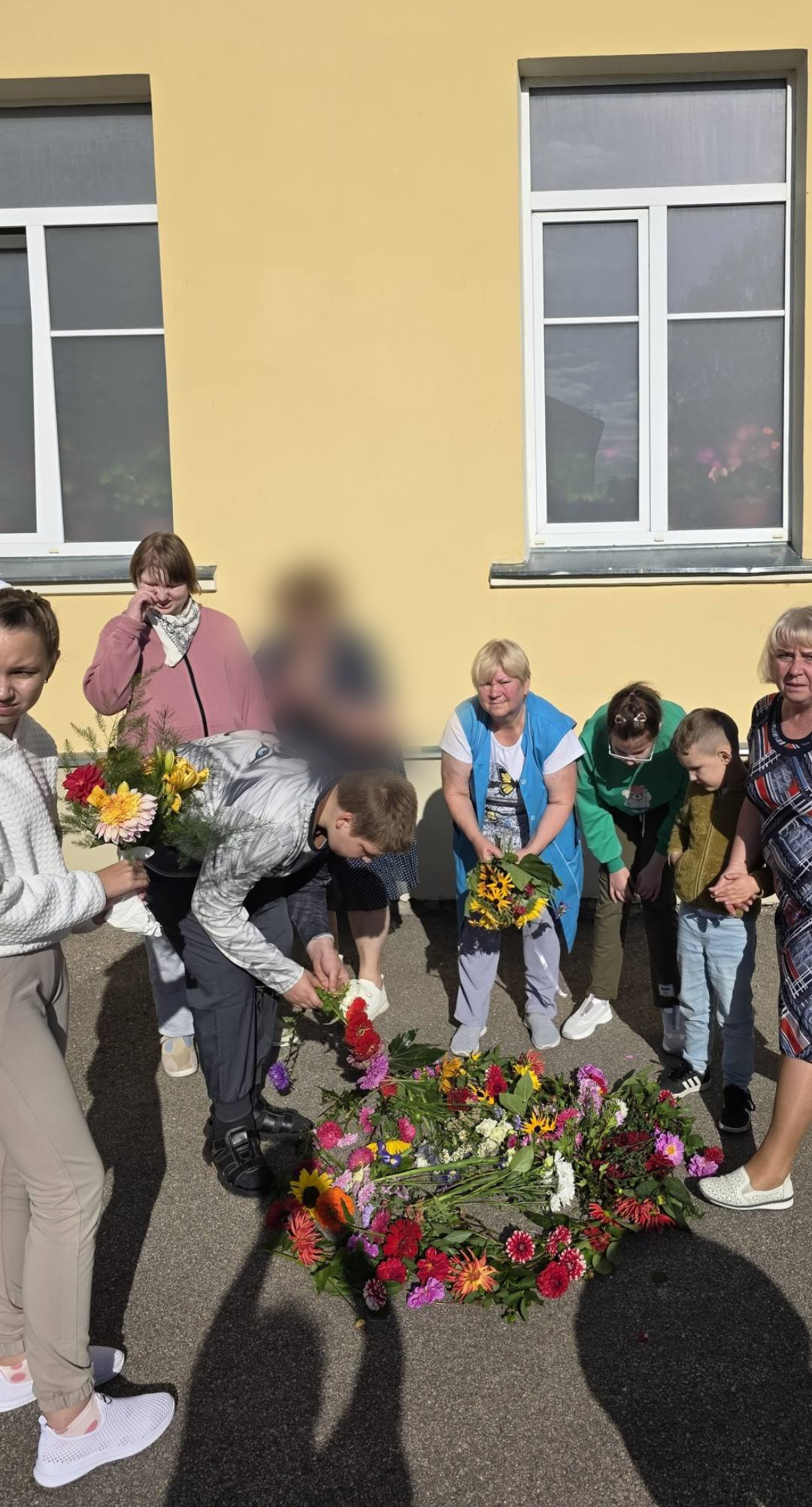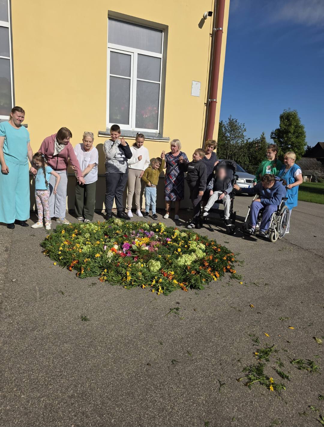 Skolas pagalmā pulcējās arī audzēkņi no IP 21015911, kas attālināti veidoja svētku ziedu mandalu par godu Latgales atbrīvošanas pieminekļa 86. gadadienai!