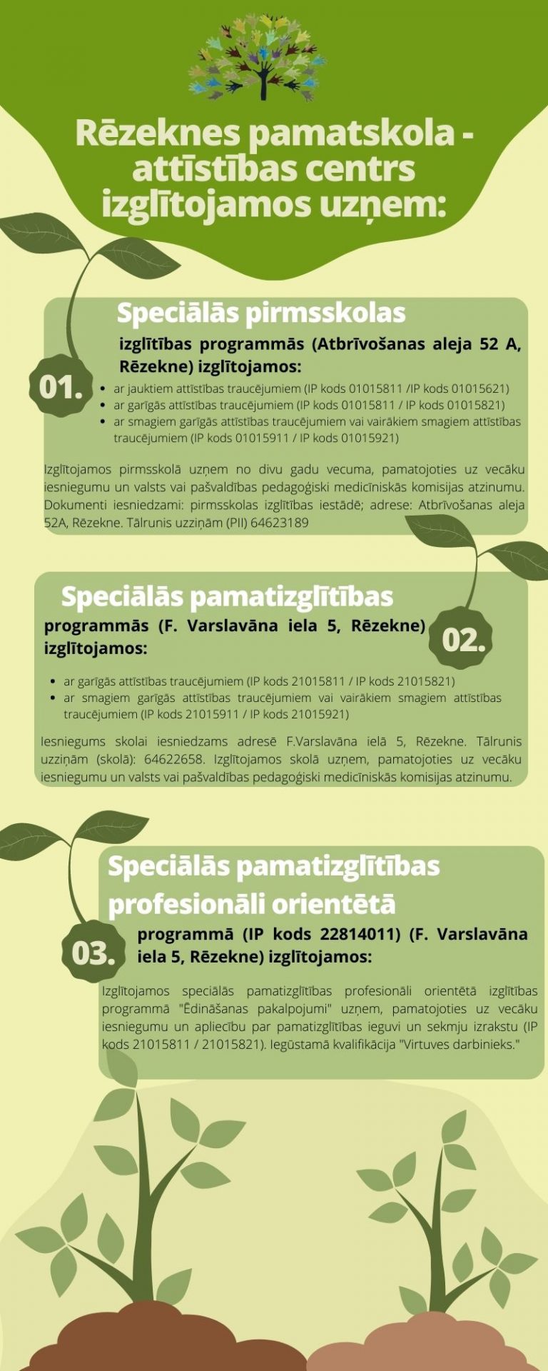 Uzņemšanas iesniegums: Iesniegums uzņemšanai pirmsskolā Informācija par Rēzeknes pedagoģiski medicīnisko komisiju: Rēzeknes pilsētas pedagoģiski medicīniskā komisijaInformācija par Valsts pedagoģiski medicīnisko komisiju: www.visc.lv. – Valsts pedagoģiski medicīniskā komisija