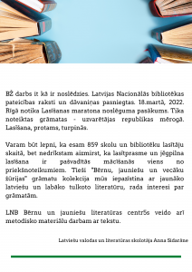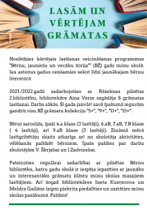 Rēzeknes pamatskolas – attīstības centra bibliotēka aicina skolēnus, skolotājus un vecākus iesaistīties “Bērnu, jauniešu un vecāku žūrijā 2022”.
