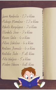 Lasīšanas sacensībā piedalījās: 5.a kl. – 2 skolēni; 6.a kl. – 7 skolēn; 6.b kl. – 3 skolēni; 6.B kl. – 1 skolēns