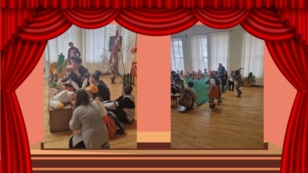 Šogad mūsu skolā Teātra diena tika atzīmēta ar dažādām izrādēm, improvizācijas spēlēm. Katrs klases kolektīvs sagatavoja nelielu priekšnesumu, kurā tika atveidotas tautas pasakas. Bija arī īpaši sagatavoti kostīmi un dekorācijas, kas padarīja izrādes vēl krāšņākas.