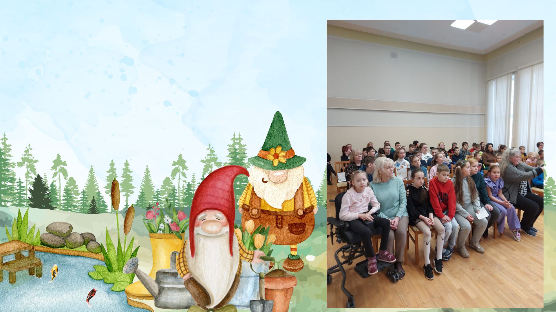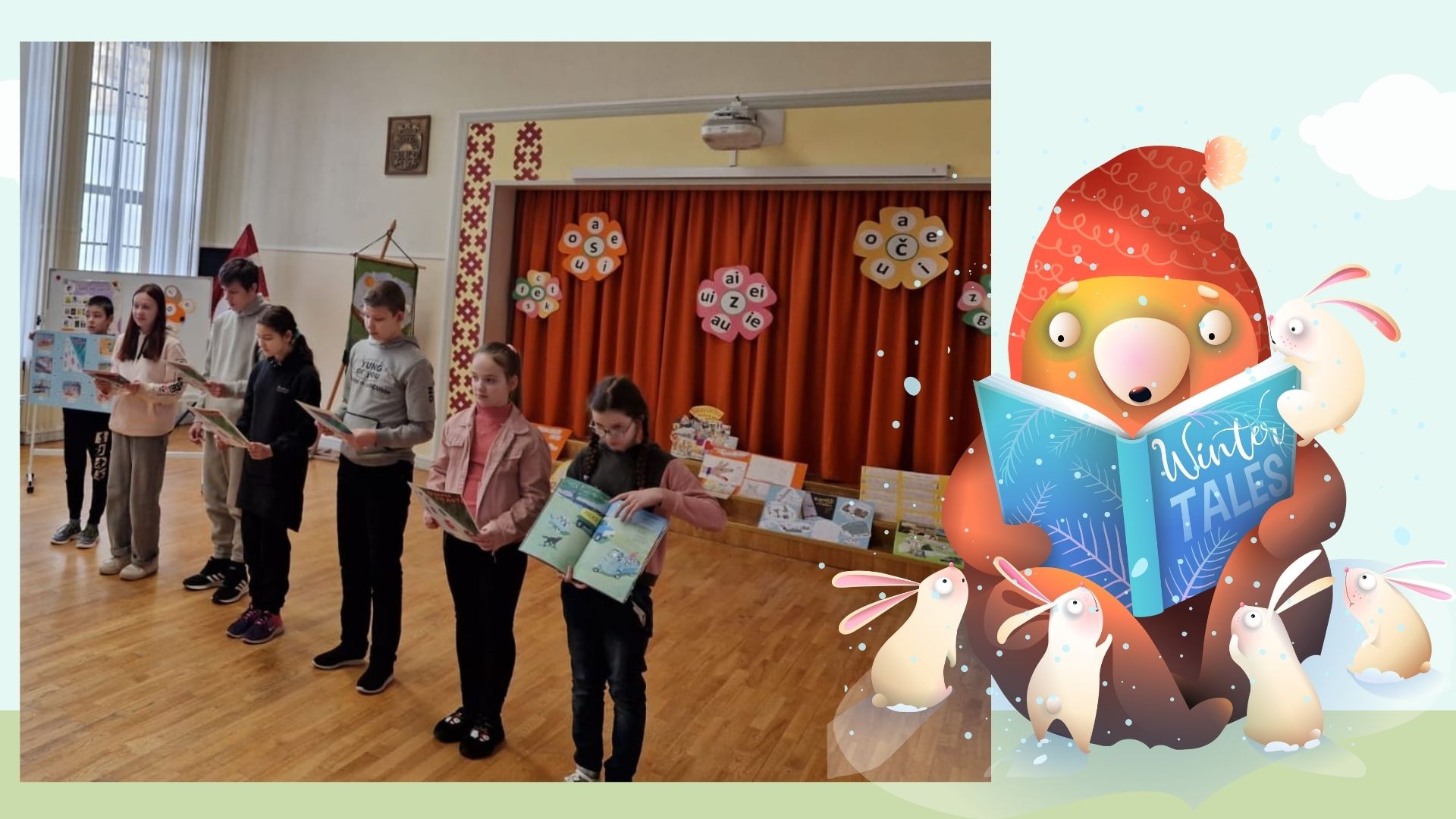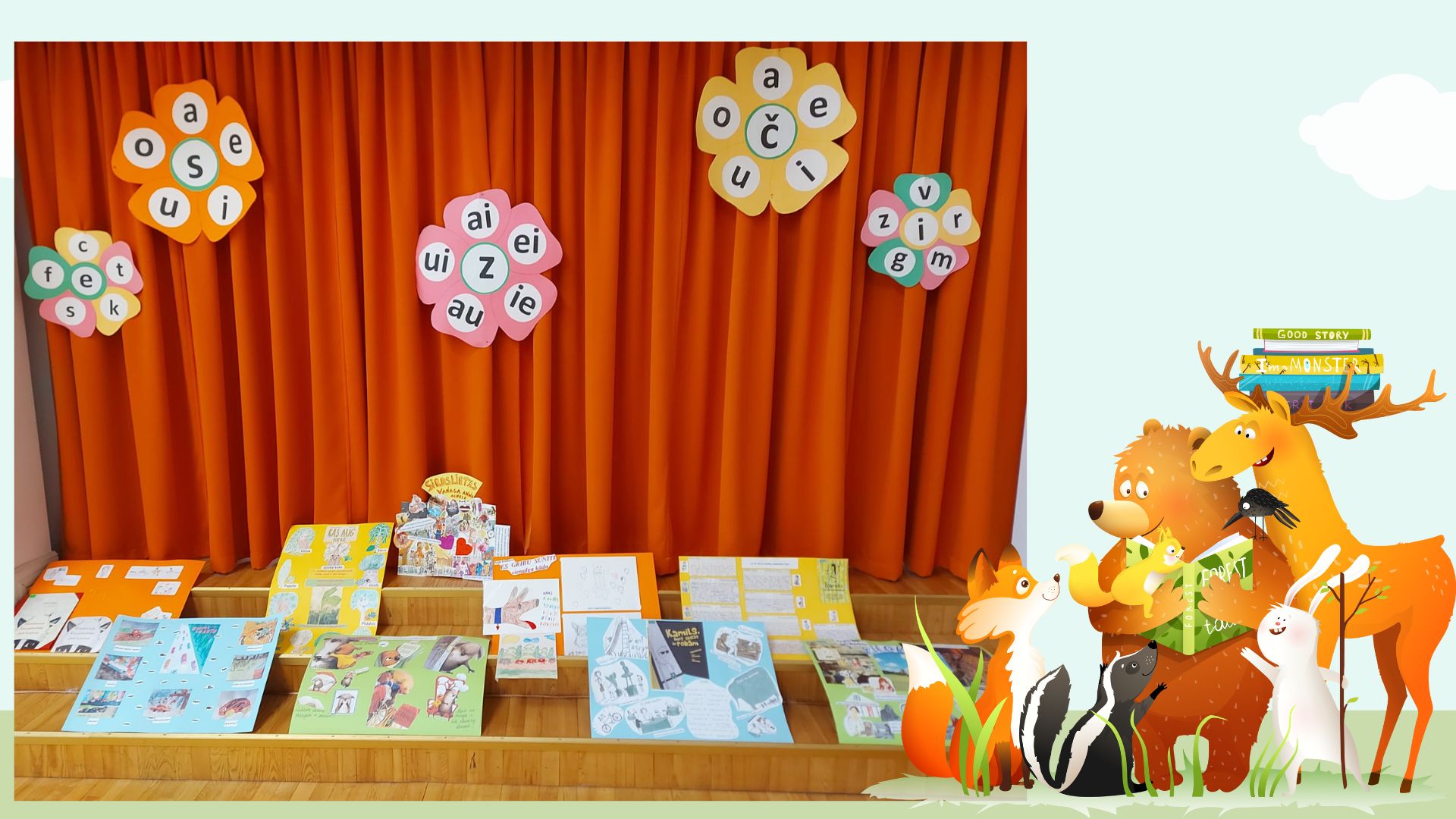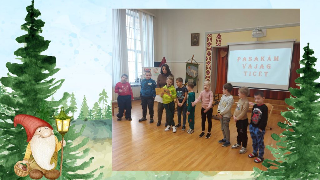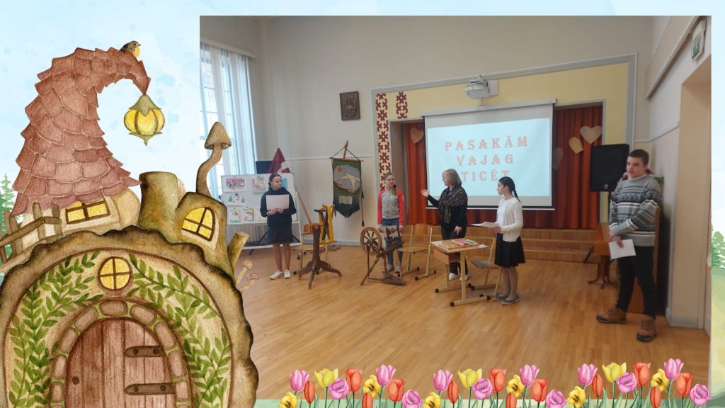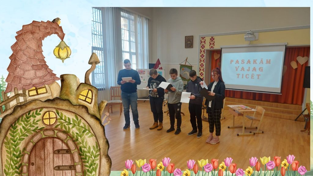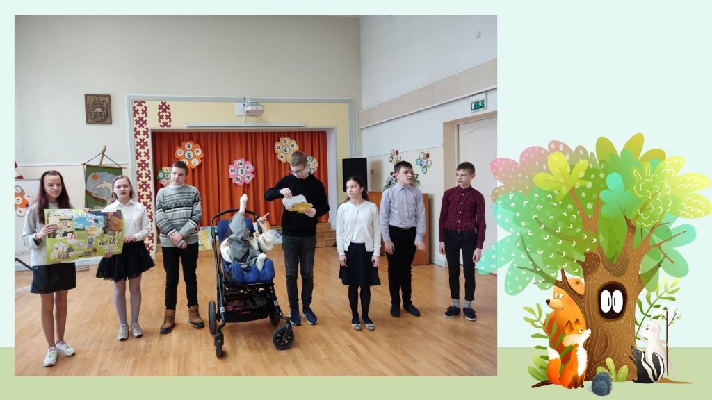 Pirmie uzstājās 8.aB un 9.aB klases skolēni (skolotāja Vija Škrjaba), pastāstot par Olgas Černas grāmatu “Klāruks un 11 vecmāmiņas”. Tad uzstājās 1.aB klases skolēni (skolotāja Oksana Volkova), viņi prezentēja Katri Kirkopelto grāmatas “Mollis” kolāžu. 2.aB klases skolēni (skolotāja Elita Utāne) stāstīja un rādīja izveidoto kolāžu par Kitijas Krauzeres grāmatu “Es gribu sunīti, vienalga kādu”. 3.aB klases skolēni (skolotāja Inese Zadvinska) bija izraudzījušies ukraiņu autores Katerinas Mihaļicinas grāmatu “Kas aug parkā”. 4.aB klases skolēni (skolotāja Tatjana Vabale) stāstīja par Tomaša Malkovska grāmatu “Kamils, kurš skatās ar rokām”. 6.aB, 7.aB klases skolēni (skolotāja Ināra Treikale) – Kadri Hinrikussa grāmatu “Zilonis” un Agneses Vanagas grāmatu “Sirdslietas”.