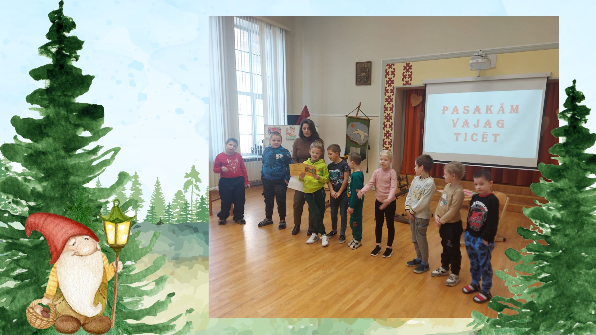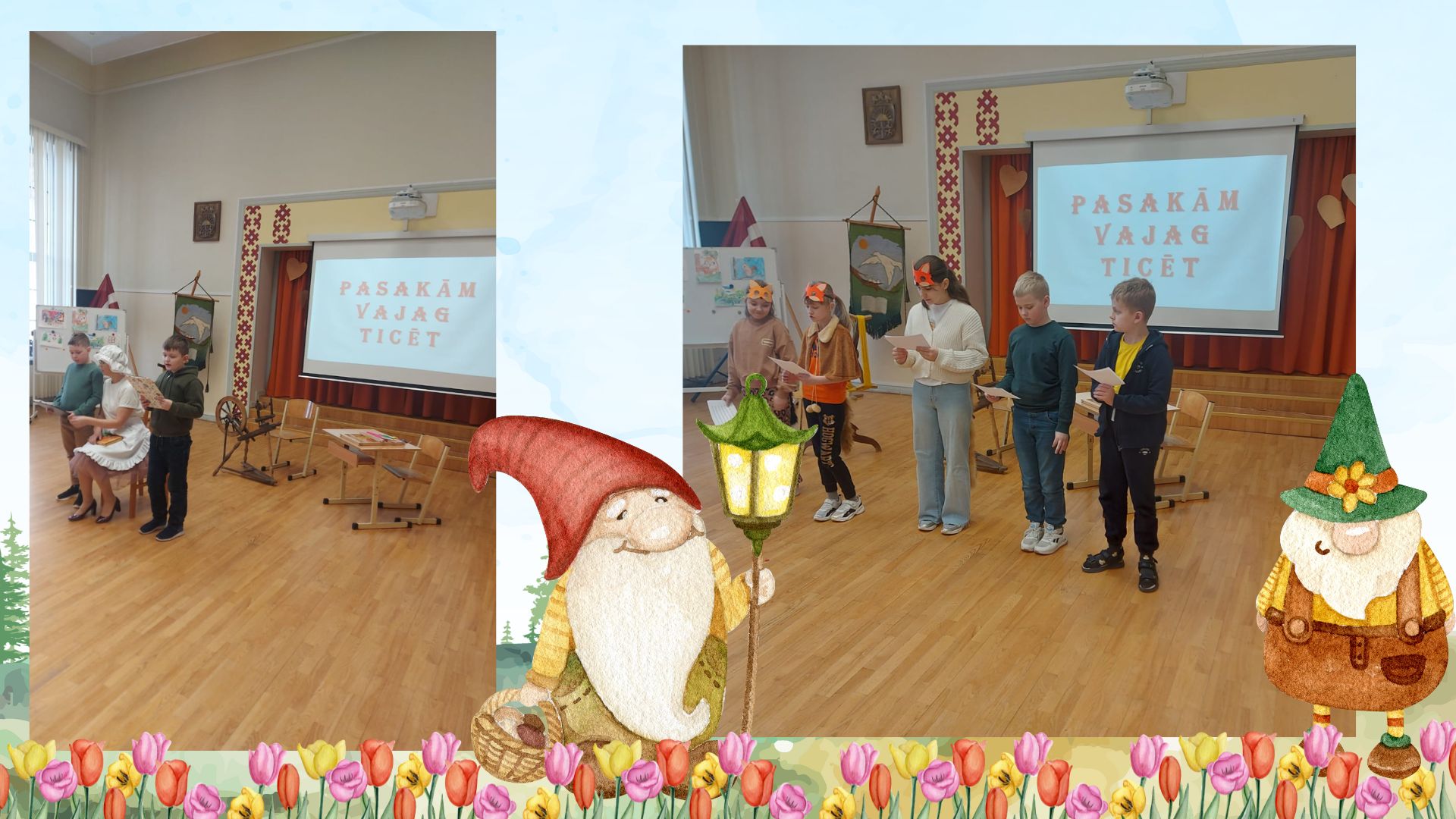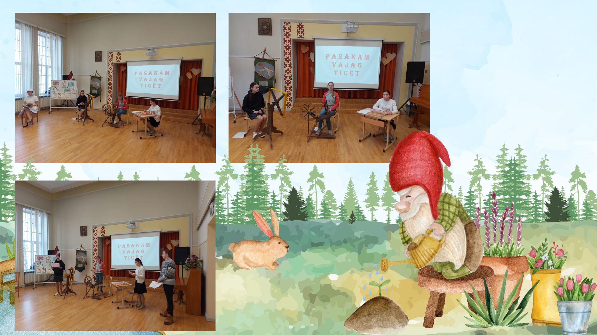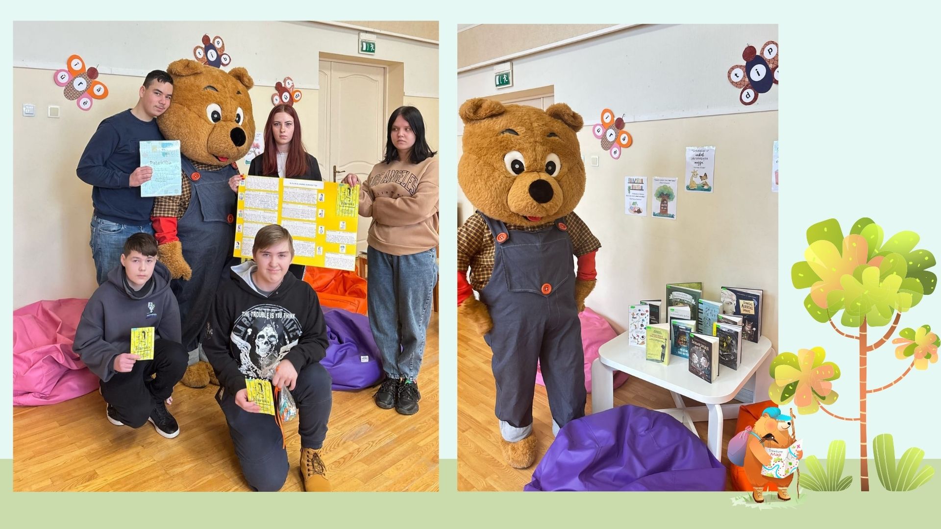 Tālāk notika lasīto “Bērnu, jauniešu un vecāku žūrijas 2024” grāmatu kolāžu prezentācija. Katrai klasei bija jāpastāsta par paveikto.