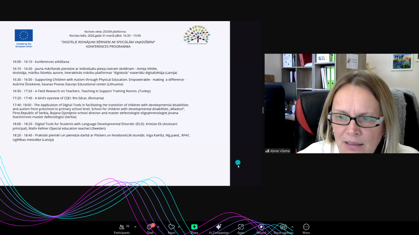 31.martā Rēzeknes pamatskolā – attīstības centrā norisinājās starptautiska tiešsaistes konference “Digitālie risinājumi bērniem ar speciālām vajadzībām”, kas pulcēja speciālistus un pedagogus no Latvijas, Lietuvas, Rumānijas, Serbijas, Turcijas un Zviedrijas.