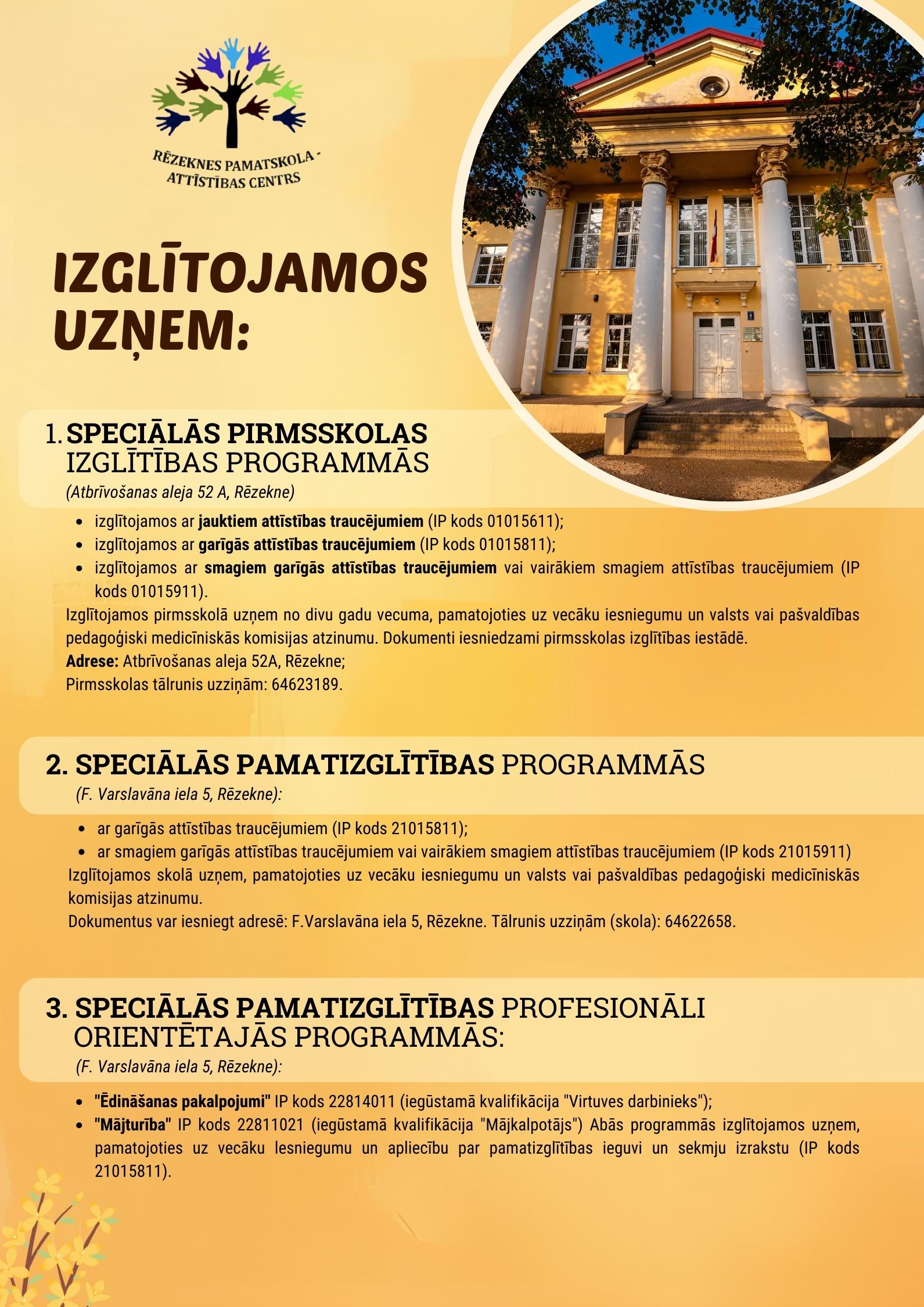 Uzņemšanas iesniegums: Iesniegums uzņemšanai pirmsskolā Informācija par Rēzeknes pedagoģiski medicīnisko komisiju: Rēzeknes pilsētas pedagoģiski medicīniskā komisijaInformācija par Valsts pedagoģiski medicīnisko komisiju: www.visc.lv. – Valsts pedagoģiski medicīniskā komisija